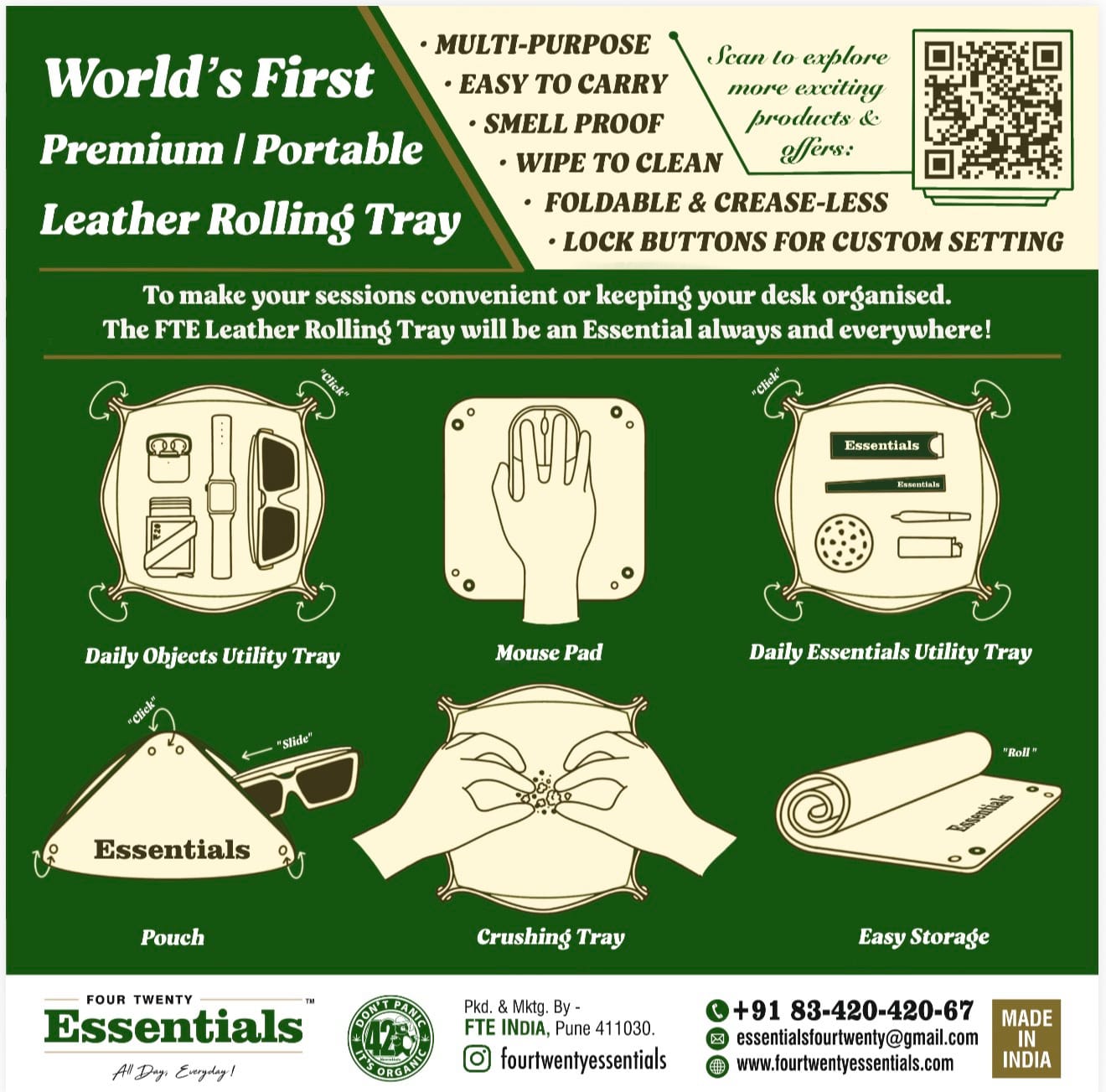 • To make your sessions convenient or keeping your desk organised, the FTE LEATHER ROLLING TRAY will be an Essential always and Everywhere!